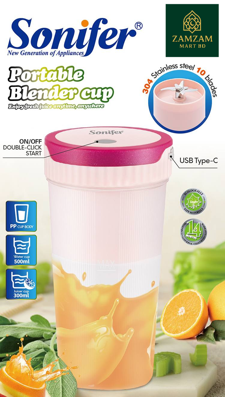 Sonifer SF-8130 (Rechargeable) multi-function custom Portable mixer Usb Type-C Blender cup ice portable mini cup juicer for travel home use